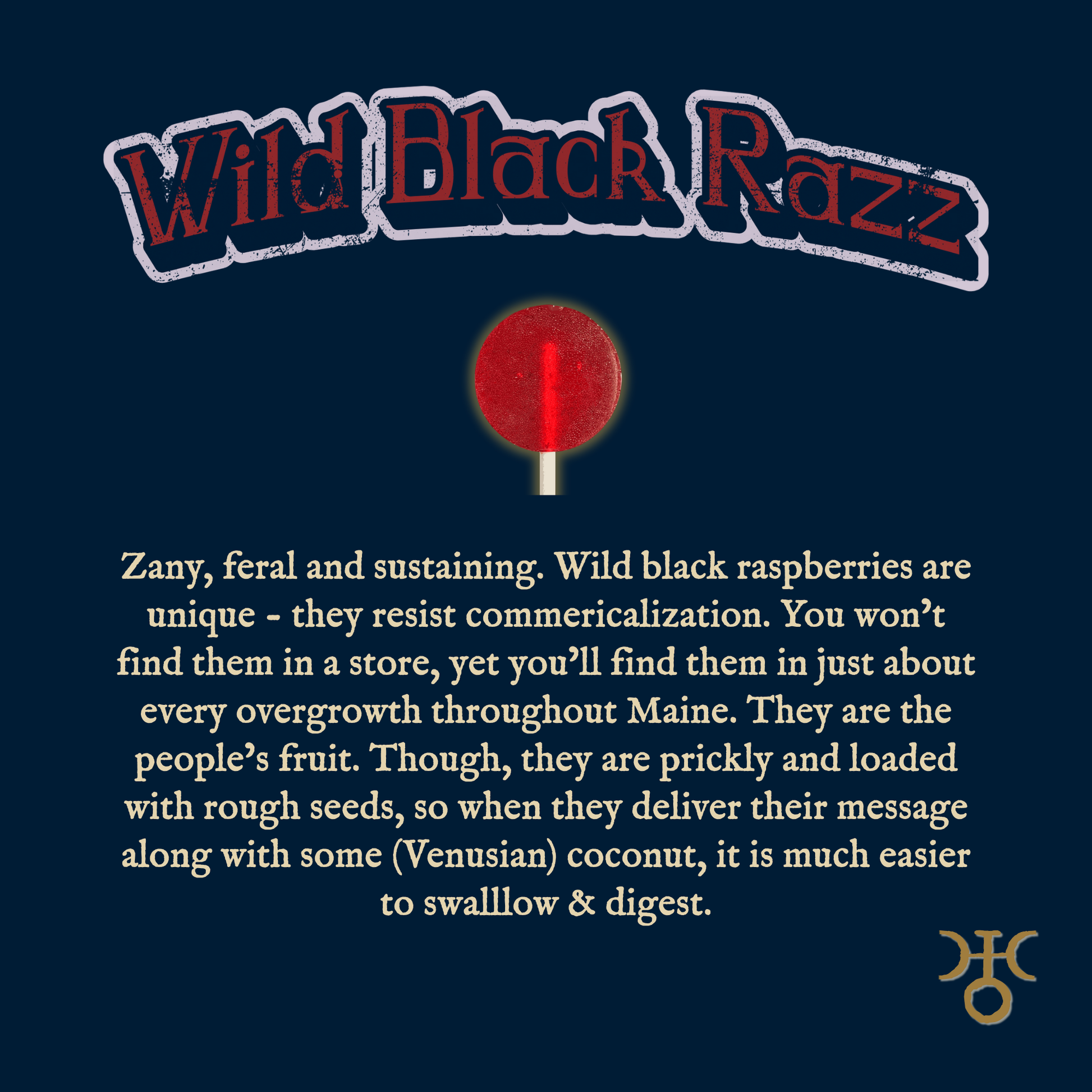 Ingredients: cane sugar*, glucose syrup, water, oven-roasted Maine black raspberry puree, creamed coconut*, blackberry flavor extract (water, alcohol, natural flavors,) olive oil* (used during processing); *organic